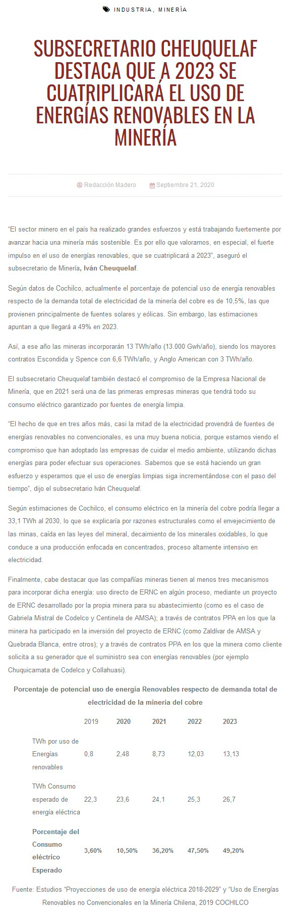 Subsecretario de Minería: Uso de energías renovables en el sector se cuatriplicará a 2023 - (biobiochile online)