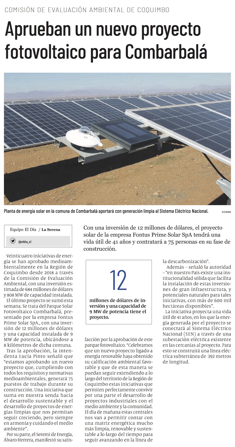 Aprueban medioambientalmente nuevo proyecto fotovoltaico para la comuna de Combarbalá - (elobservatodo)