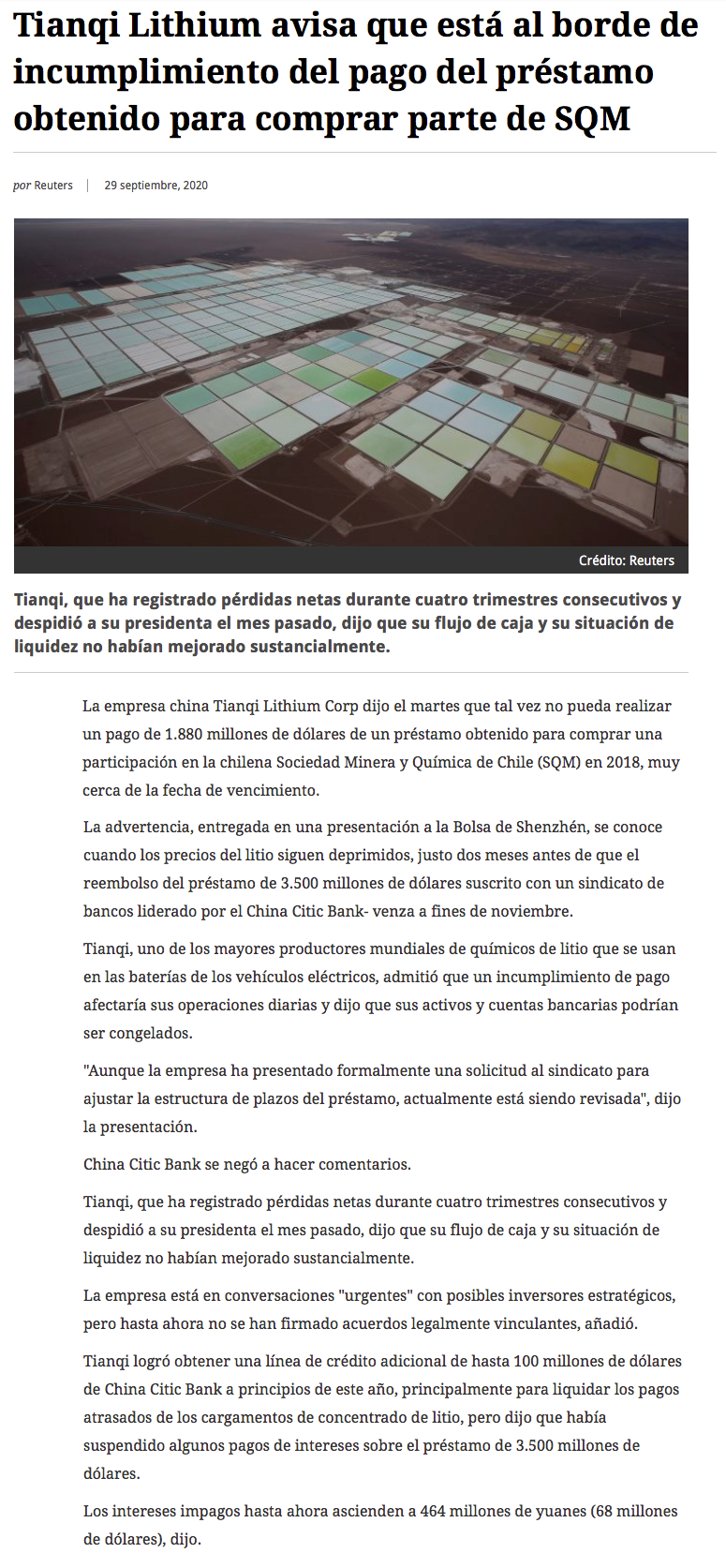 Tianqi enfrenta complejo escenario para saldar deudas - (El Mercurio de Santiago)