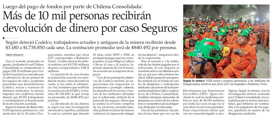 Más de 10 mil mineros de Codelco recibirán pago por sobreprecio - (El Mercurio de Calama)