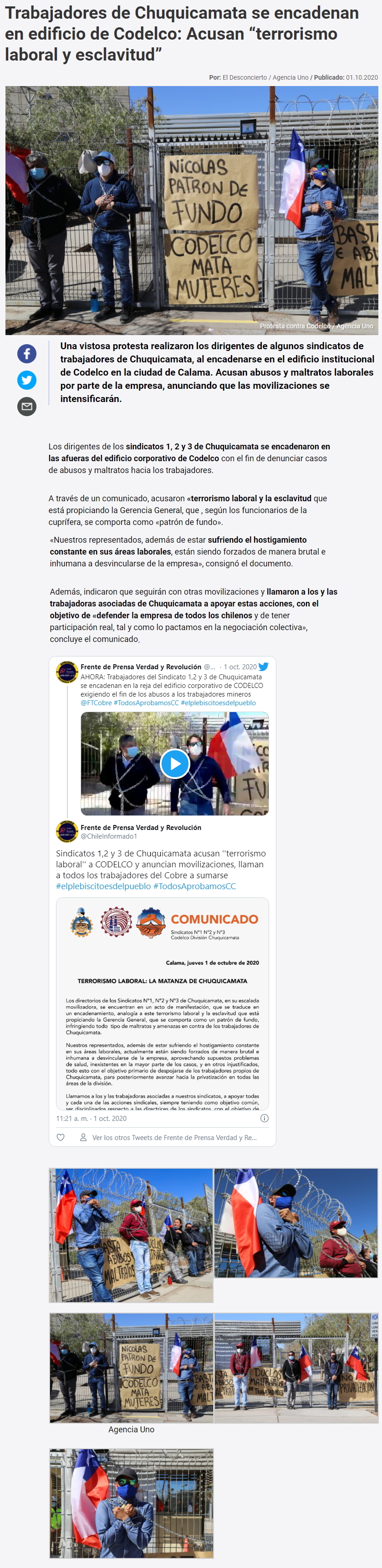 Dirigentes se encadenaron al corporativo denunciando malas relaciones laborales - (El Mercurio de Calama)