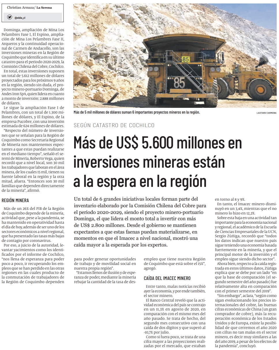 Grandes proyectos mineros siguen siendo la esperanza reactivadora - (La Región)