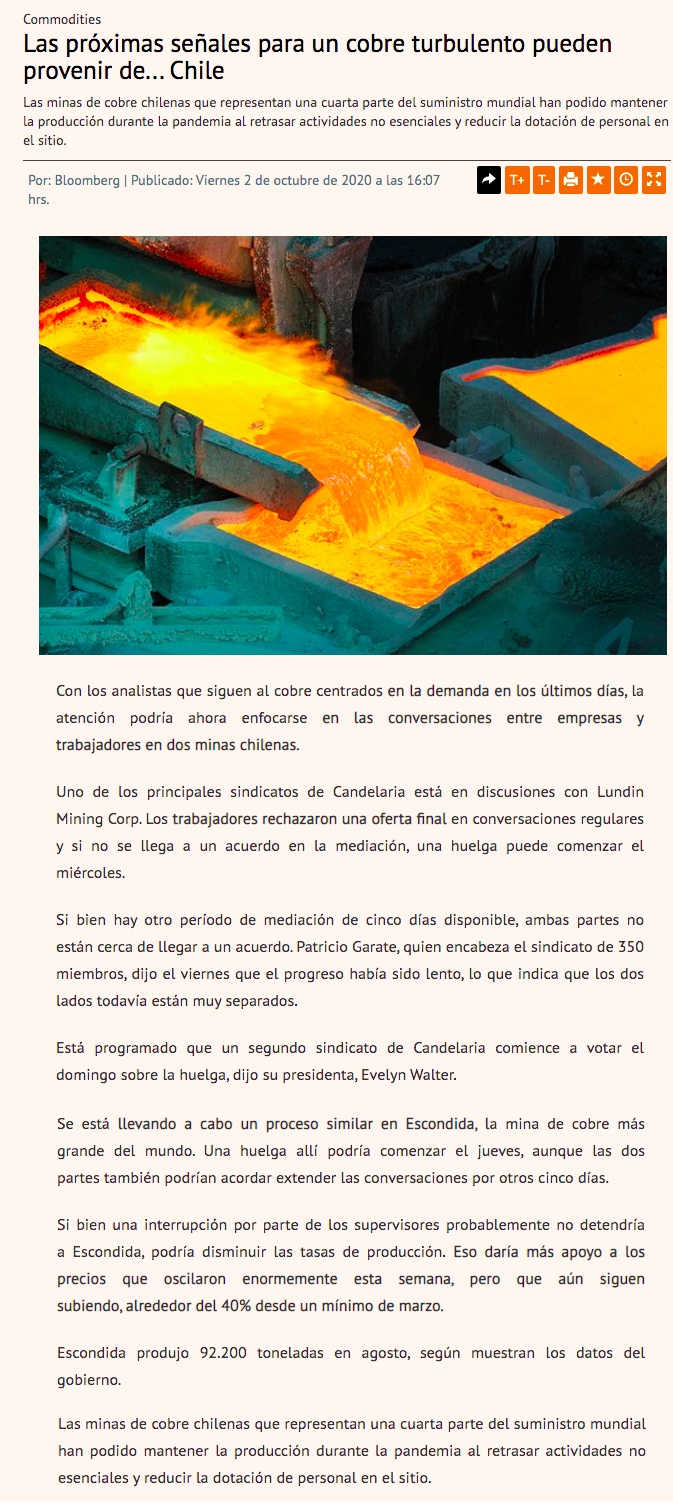 Futuros de cobre ignoran el contagio de Trump y suben con fuerza tras la fuerte corrección del jueves - (DF Online)