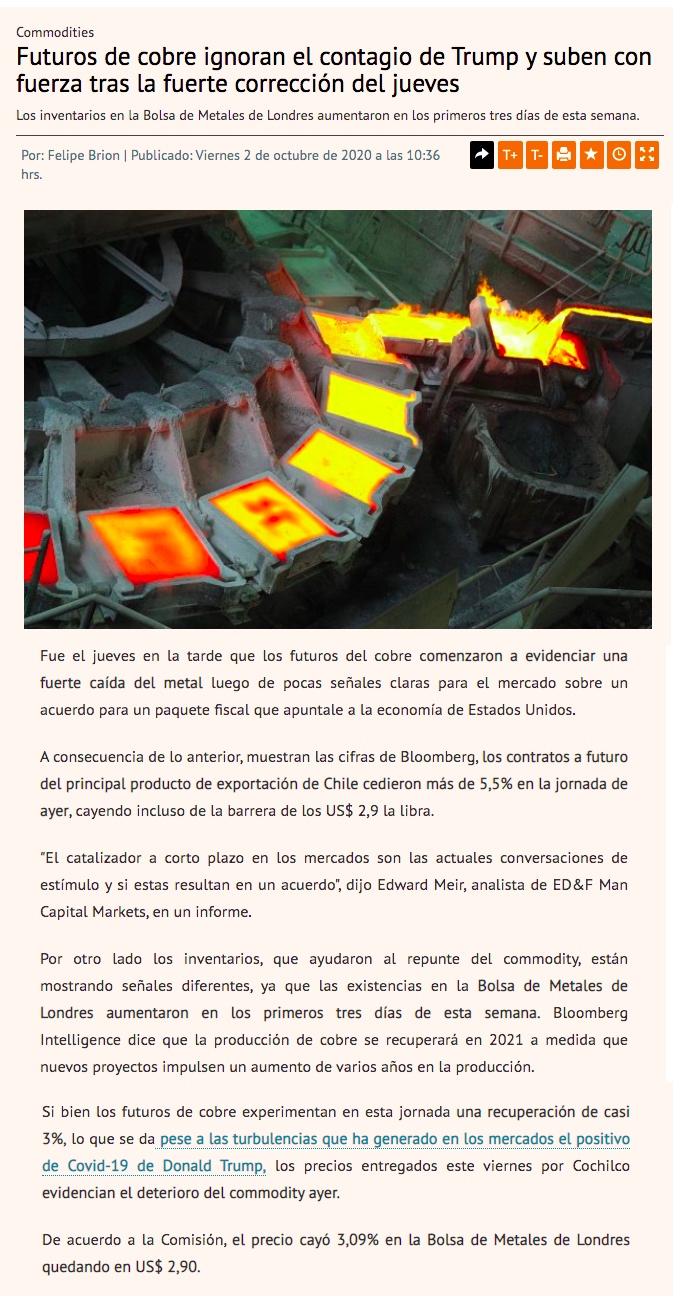 Las próximas señales para un cobre turbulento pueden provenir de... Chile - (DF Online)