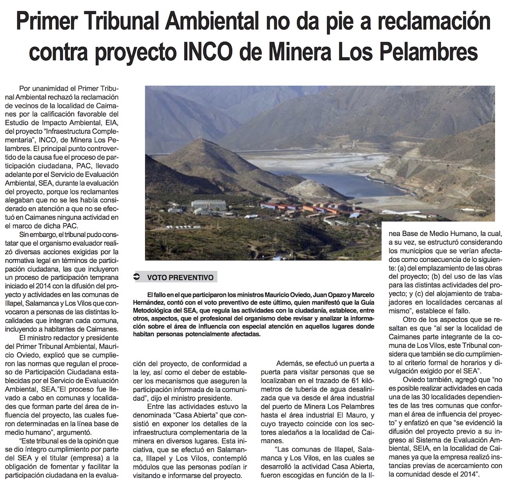 Tribunal Ambiental rechaza reclamación contra Proyecto INCO de Mina Los Pelambres - (El Día)