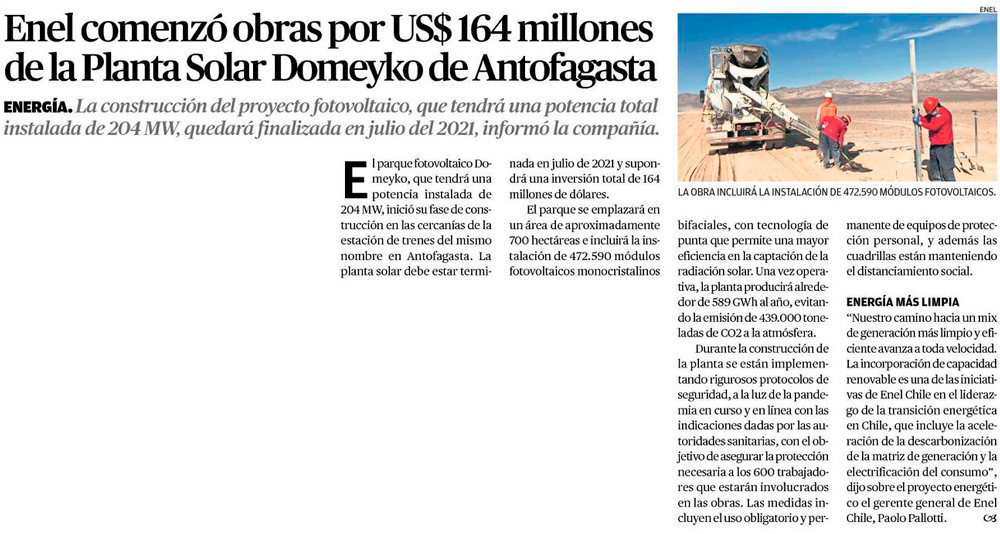 Enel Green Power comienza construcción de planta solar Domeyko en Antofagasta - (DF Online)