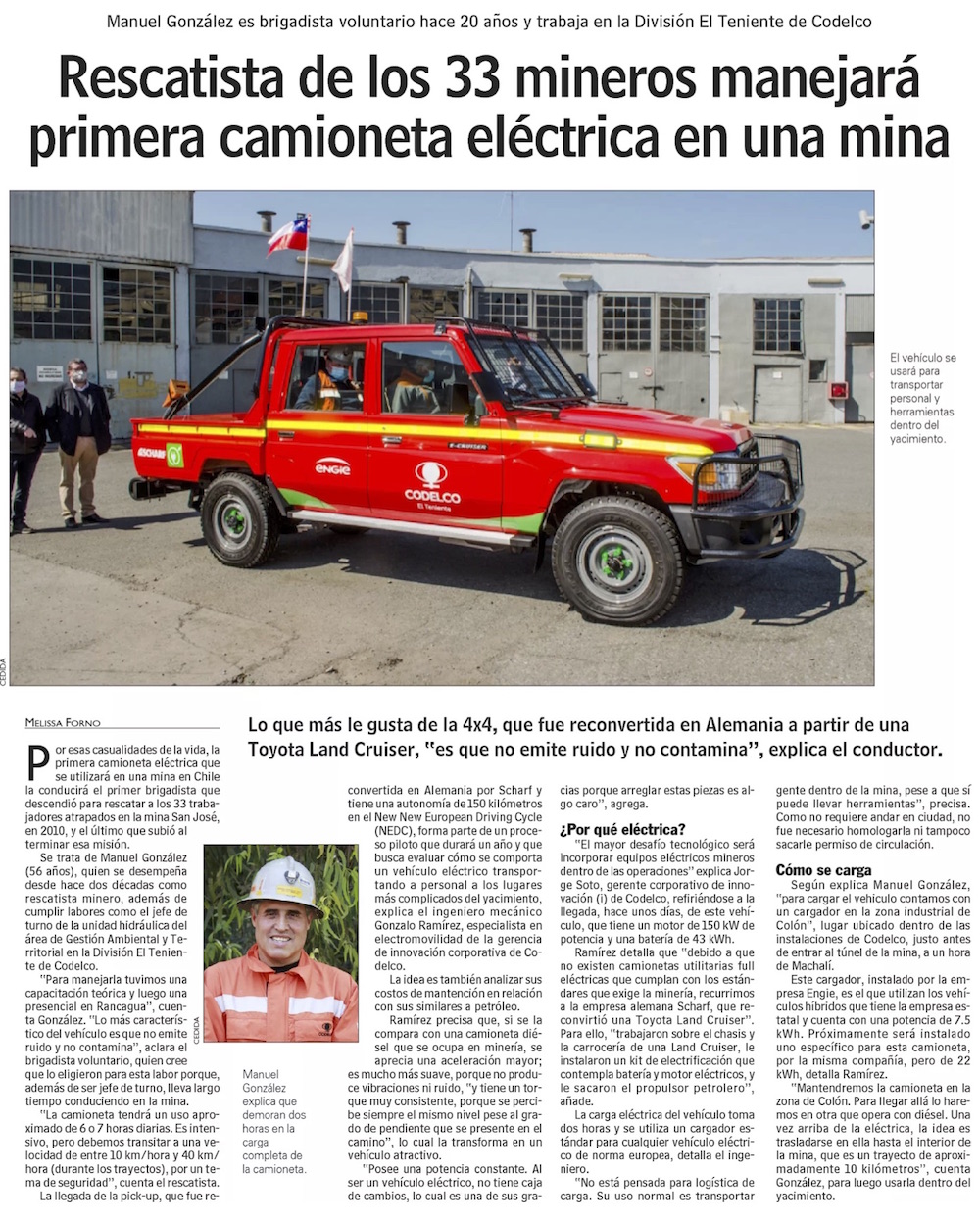 Codelco estrena la primera camioneta eléctrica minera de la industria local - (El Rancagüino)