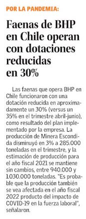Producción de Cobre de BHP a nivel global anotó una marginal disminución durante el tercer trimestre - (Pulso Online)