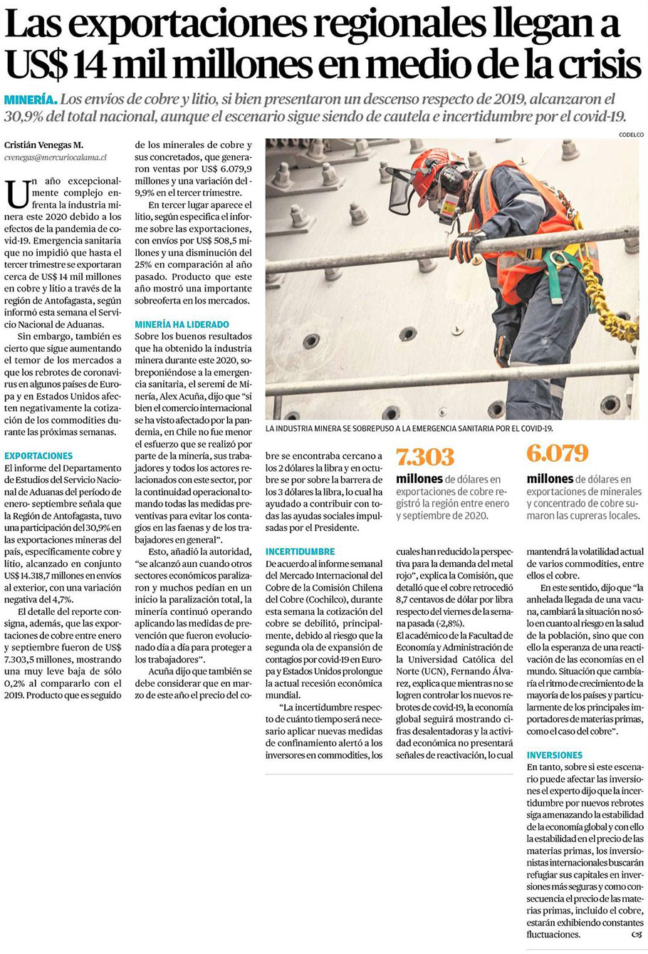 Las exportaciones llegan a US$ 14 mil millones en la región en medio del temor a los rebrotes - (El Mercurio de Calama)