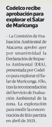 Comisión ambiental da luz verde para exploraciones de Codelco en salar Maricunga - (El Mercurio de Santiago)
