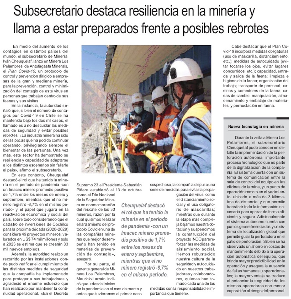 Subsecretario de Minería lanza protocolo Covid y llama a estar preparados frente a posibles rebrotes - (presslatam.cl)