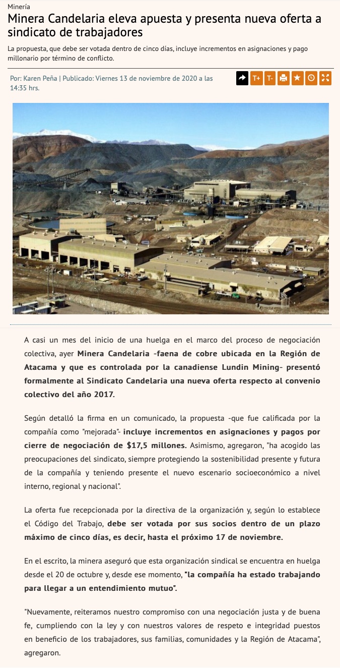 Mina Candelaria mejora oferta a sindicato en intento por terminar prolongada huelga - (El Mostrador)