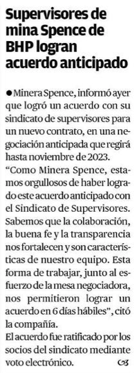 Supervisores de mina Spence de BHP logran acuerdo contractual anticipado - (El Mostrador)
