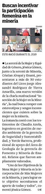 Con testimonio de trabajadores buscan incentivar la participación femenina en la minería - (El Chañarcillo)