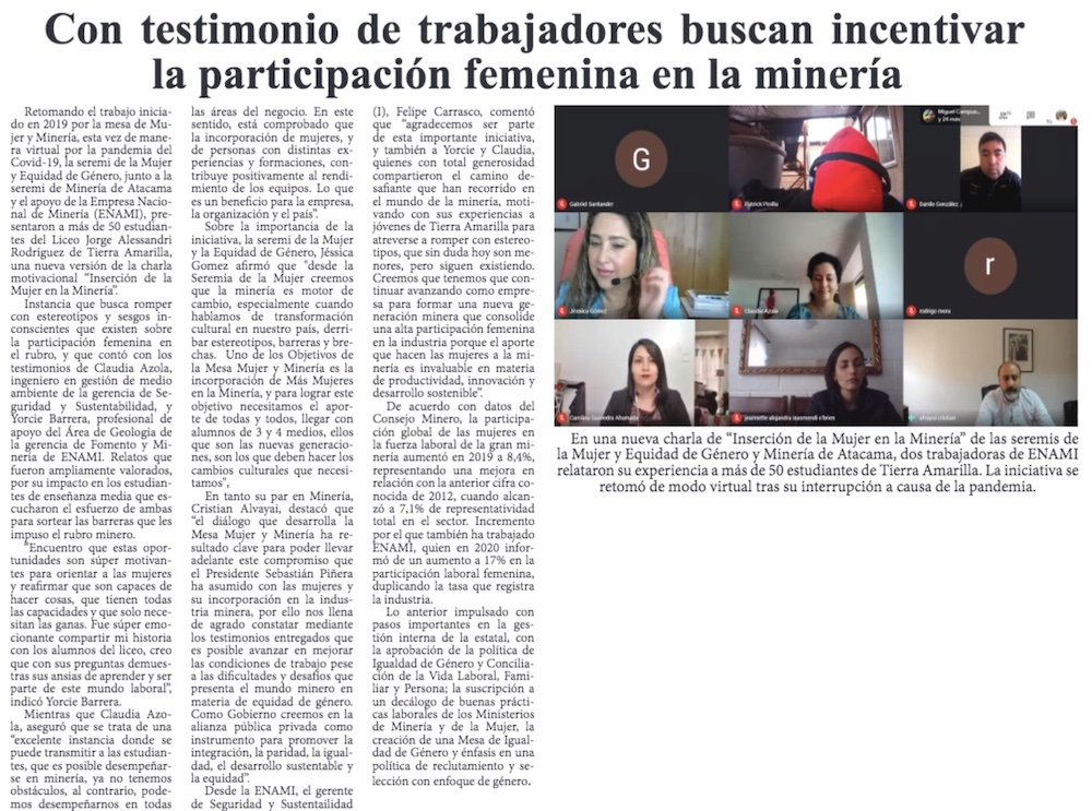 Buscan incentivar la participación femenina en la minería - (El Diario de Atacama)