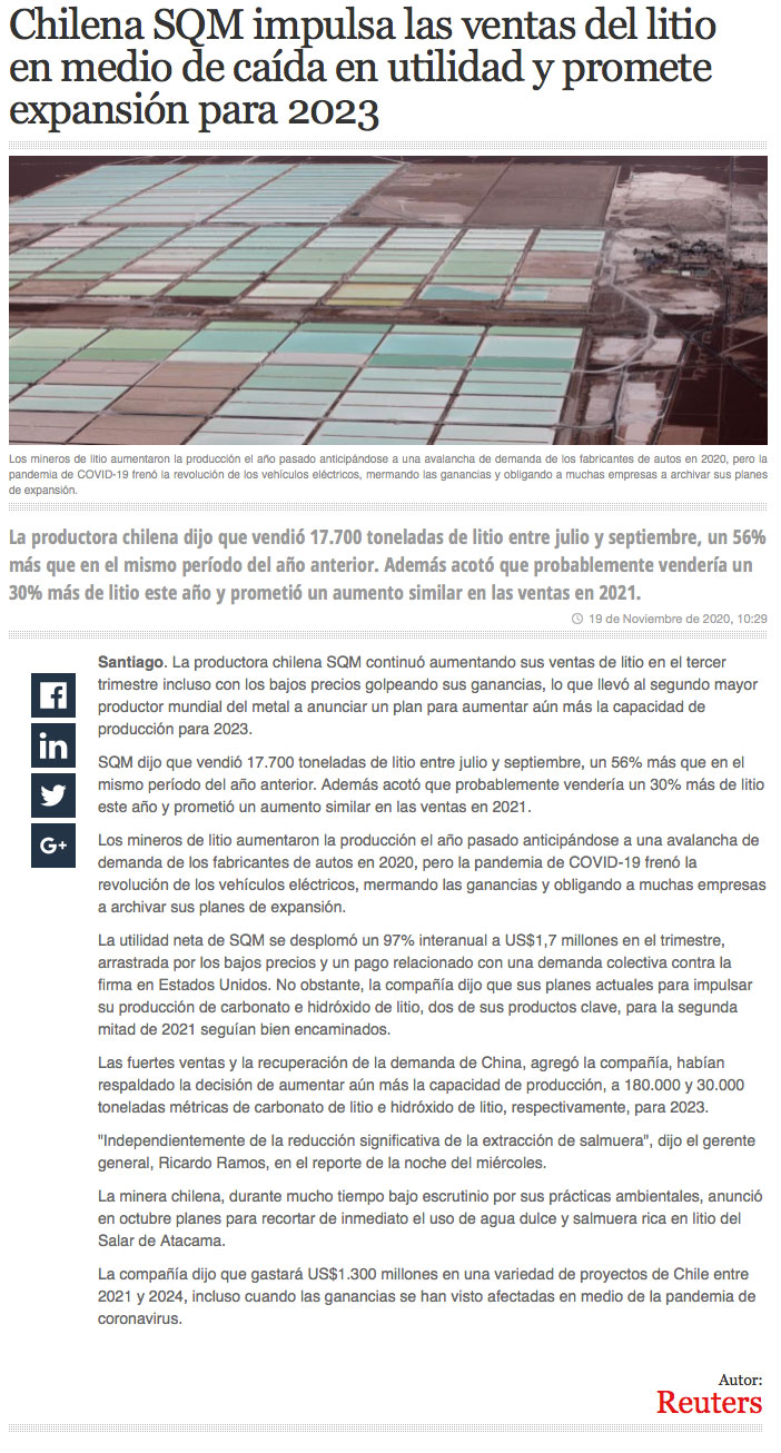 SQM prepara plan de inversiones por US$ 1.300 mills. a 2024 - (El Mercurio de Santiago)