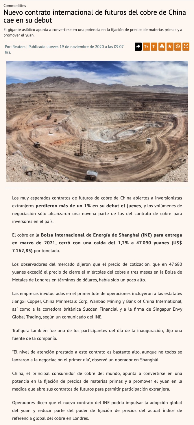 China lanza contrato de cobre para apostar por el crecimiento mundial - (Pulso)