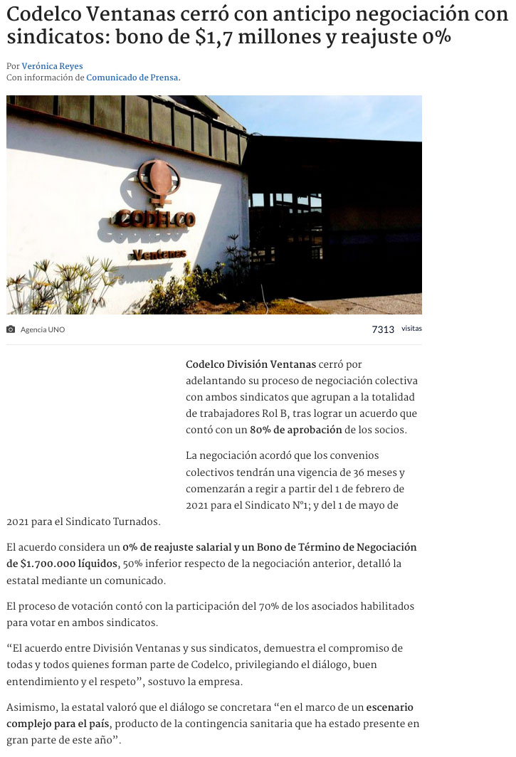 Sindicato de Codelco Ventanas consiguió bono de fin de conflicto: van a recibir $1 millón 700 mil - (soyvalparaiso)