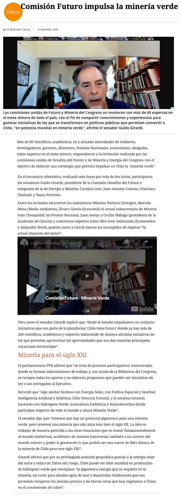 Comisión del Futuro busca impulsar la Minería Verde - (El Mercurio de Santiago)