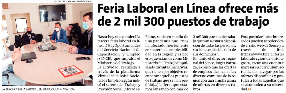 Más de 2 mil 300 puestos de trabajo para la Región de Antofagasta ofrece la Feria Laboral en Línea #HayOportunidades - (elamerica)