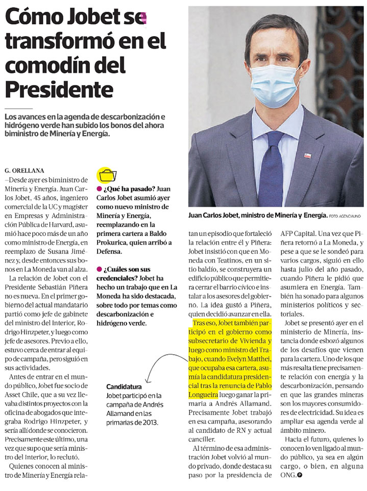Juan Carlos Jobet: el biministro que se ganó la confianza del presidente - (Diario Financiero)