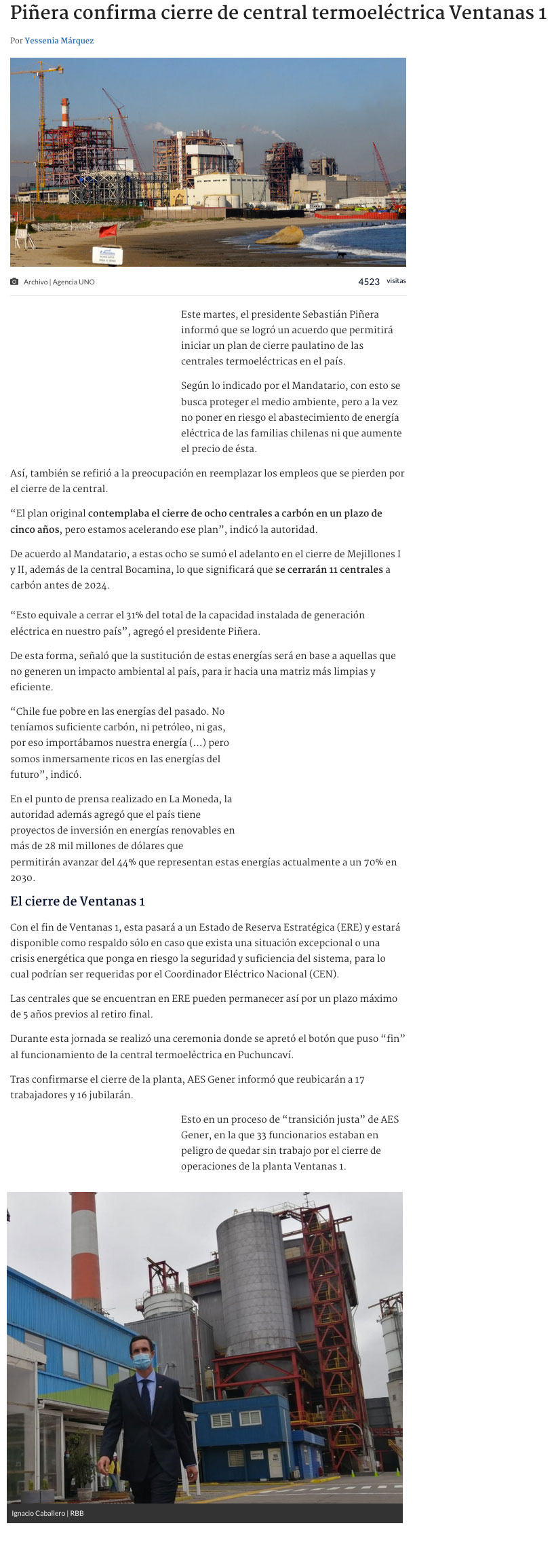 AES Gener inicia cese de operación de dos de sus centrales en Puchuncaví - (El Mercurio de Santiago)