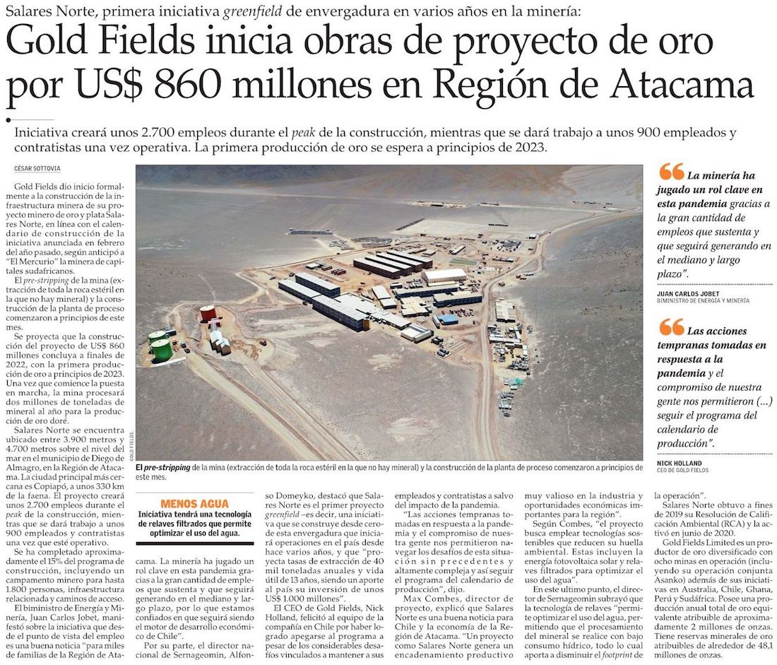 Comienza la construcción del proyecto Salares Norte y se proyecta la primera producción de oro en 2023 - (El Diario de Atacama)