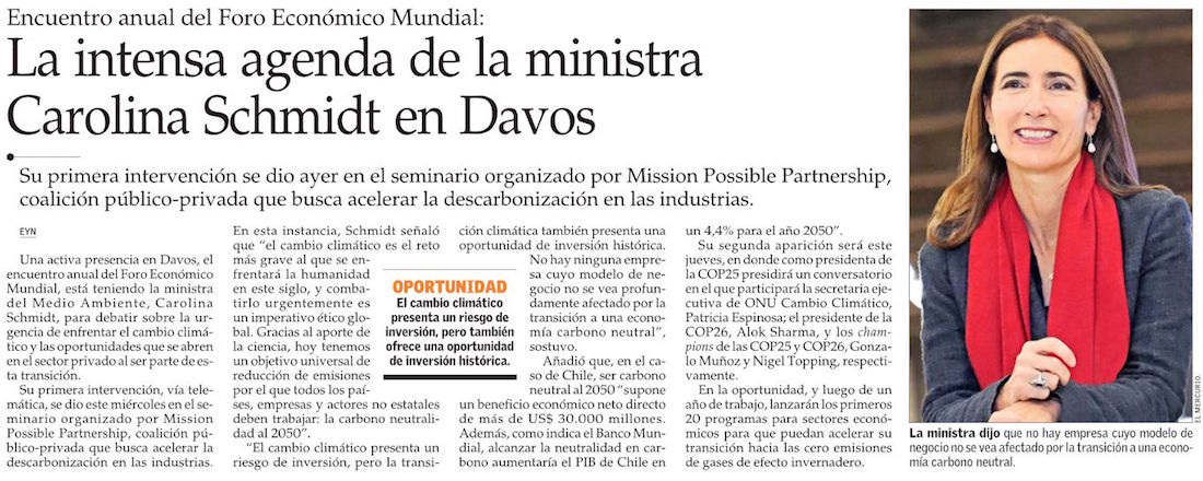 Ministra Schmidt destaca desarrollo de hidrógeno verde en Foro Económicos Mundial - (Diario Financiero)