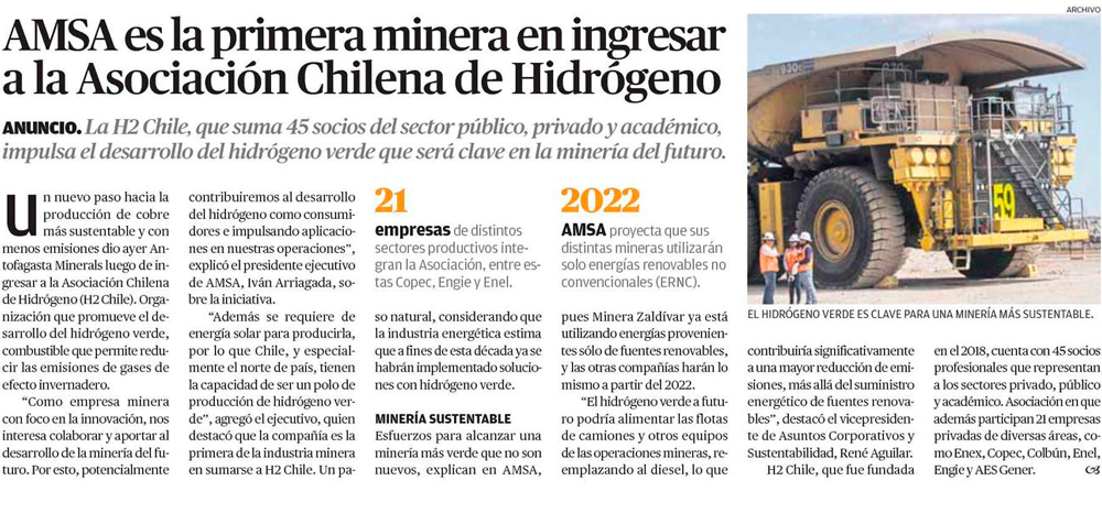 Antofagasta Minerals busca promover desarrollo del hidrógeno verde - (El Día)