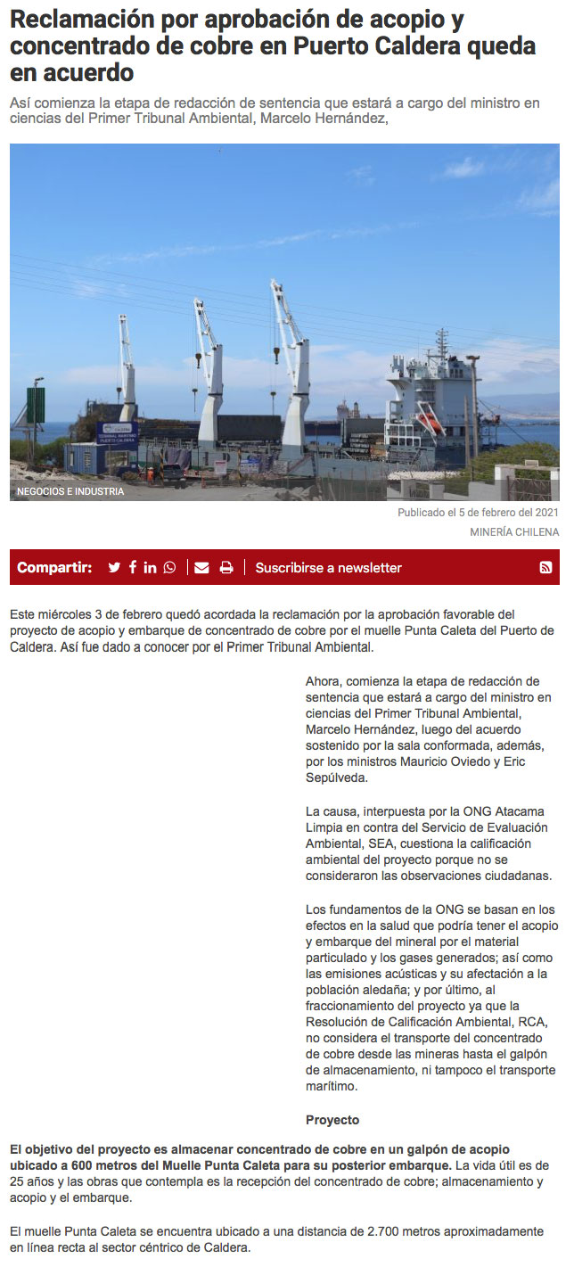 Reclamación por aprobación favorable de proyecto acopio y concentrado de cobre de Puerto de Caldera queda en acuerdo - (Nostálgica Online)