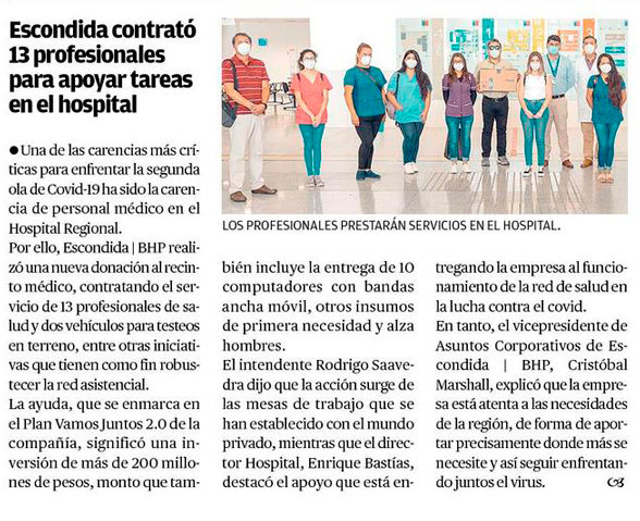 Donación permitió contratar a nuevo personal de salud para Hospital Regional de Antofagasta - (biobiochile online)
