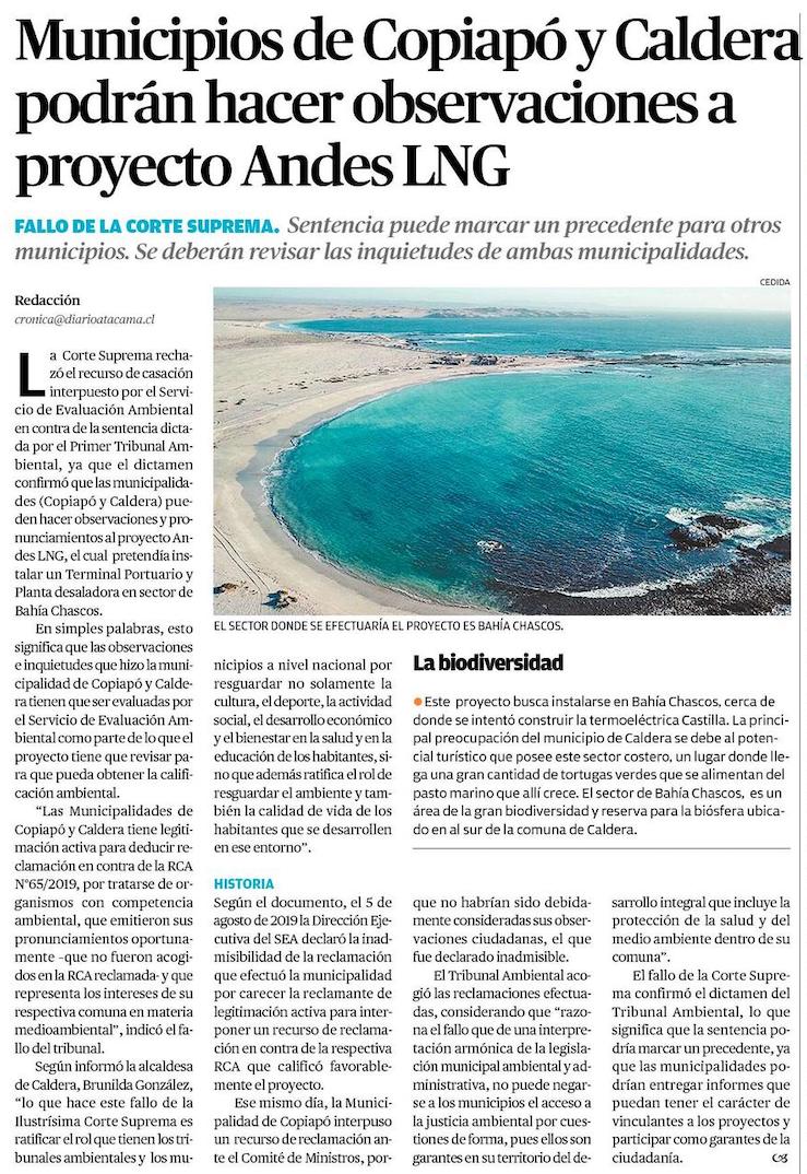 Tribunal Ambiental detiene proyecto Andes Lng que pretendía instalarse en Bahía Chasco - (tierramarillano.cl)