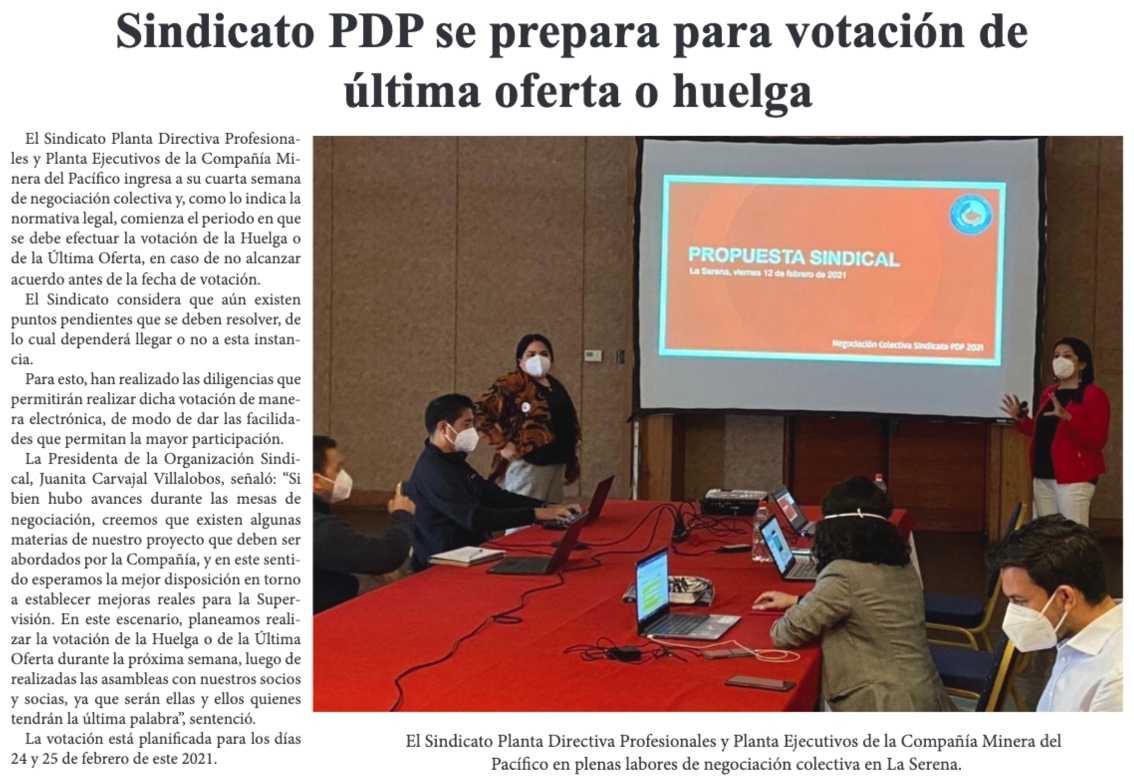 Sindicato PDP de Compañía Minera del Pacífico votará propuesta - (El Diario de Atacama)