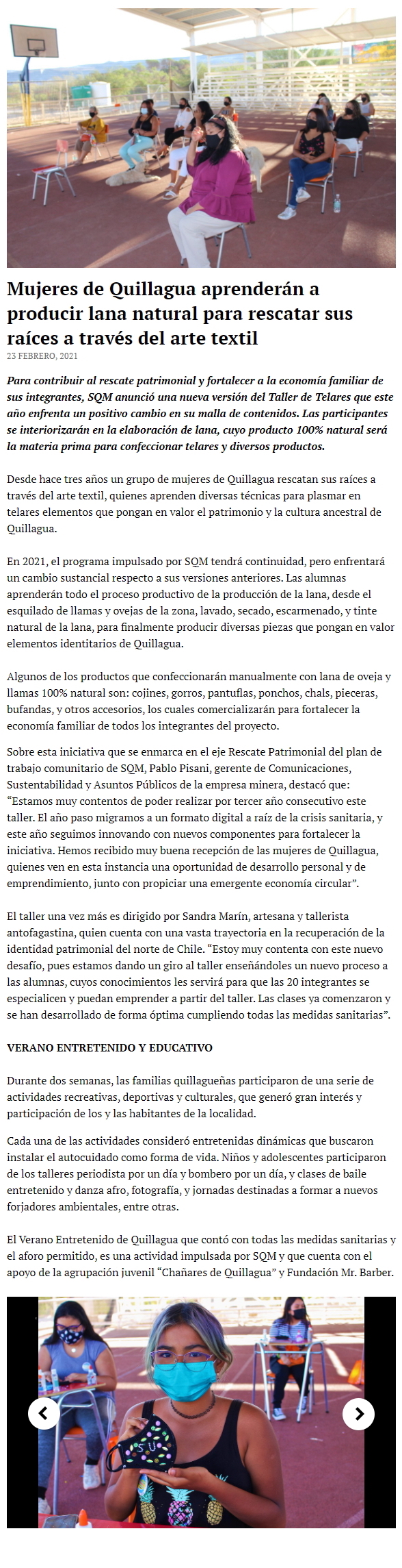 Mujeres de Quillagua aprenderán a producir lana natural para rescatar sus raíces a través del arte textil - (timeline)