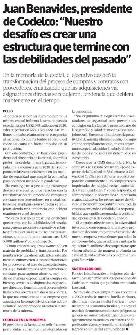 Codelco: “Estamos cambiando la manera de gestionar nuestro negocio” - (Diario Financiero)