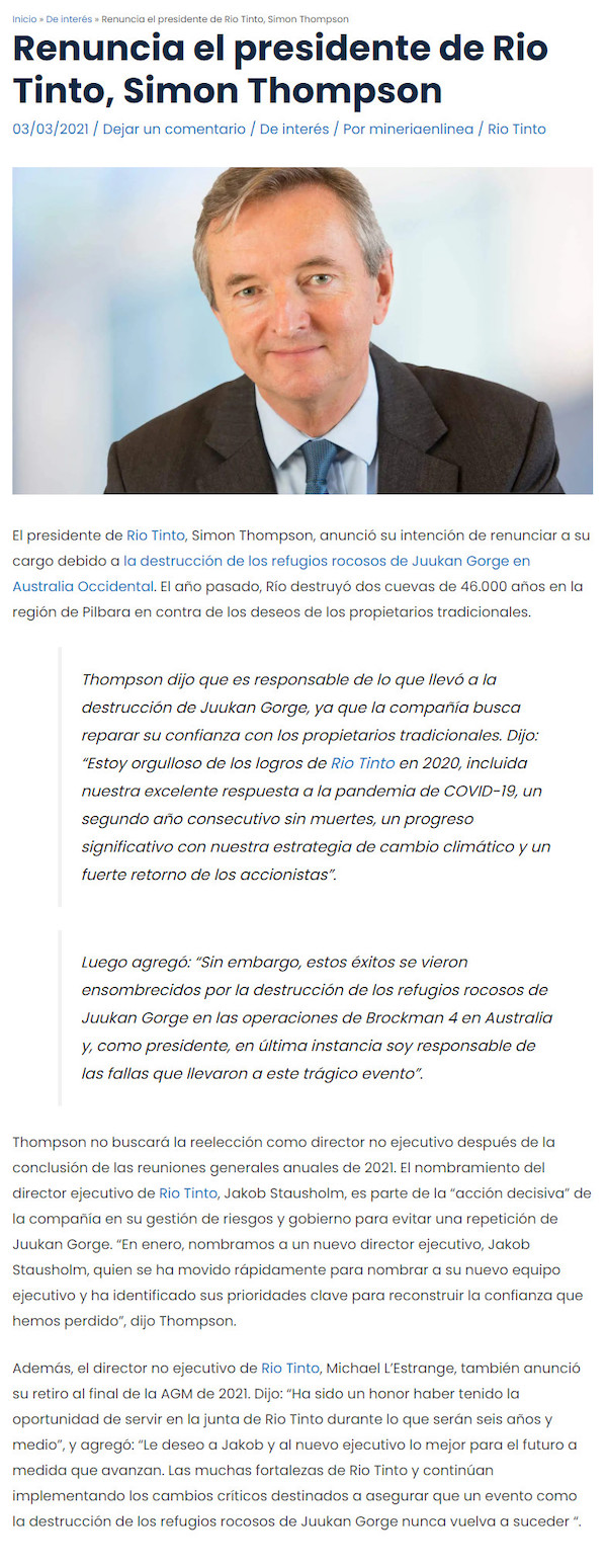 Dimite jefe de Rio Tinto por destrucción de santuario indígena - (La Segunda)
