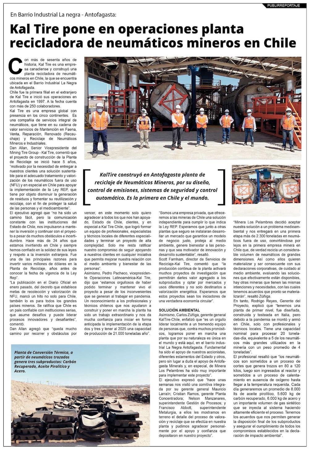 Kal Tire iniciará operaciones de planta recicladora de neumáticos mineros en Chile - (El Mercurio de Santiago)