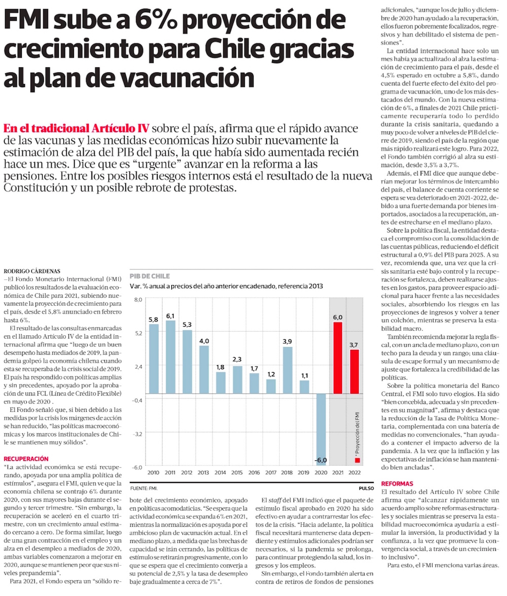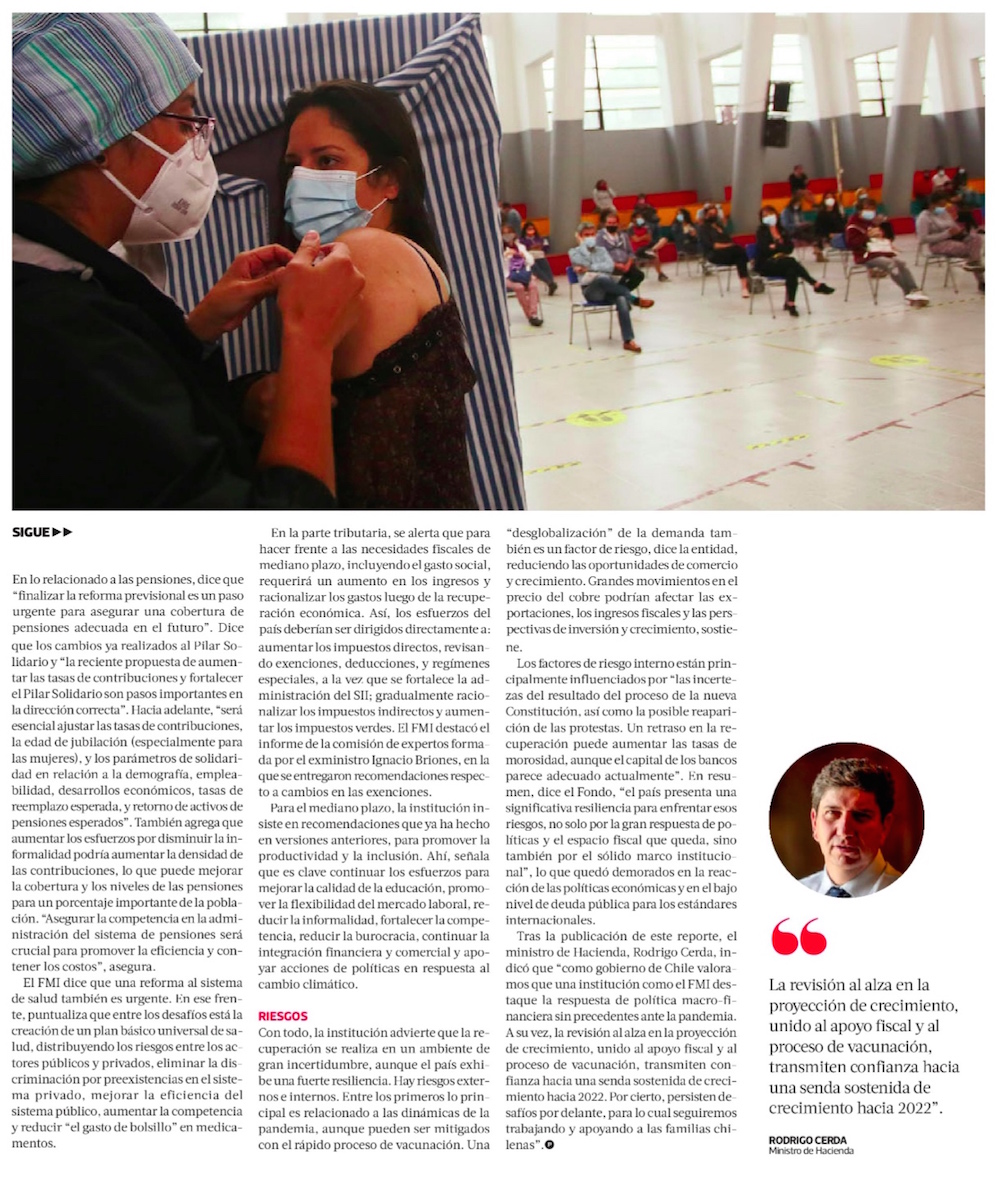 FMI sube cálculo del PIB de Chile a 6% y dice que es urgente finalizar la reforma de pensiones - (El Mercurio de Santiago)