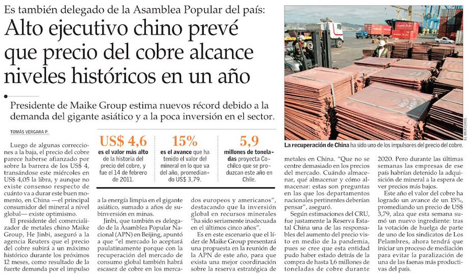 Maike Group: Precio del cobre alcanzará máximo histórico en próximos 12 meses - (El Mostrador)