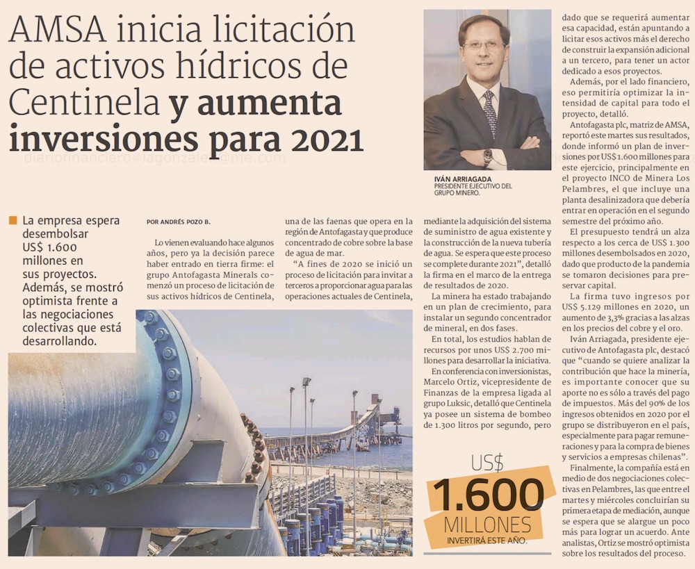 Minera de los Luksic revela inversiones y anuncia aumento en pago de dividendos - (El Mercurio de Santiago)
