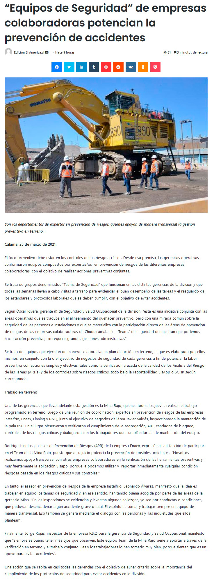 Equipos de seguridad de empresas contratistas potencian prevención - (El Mercurio de Calama)