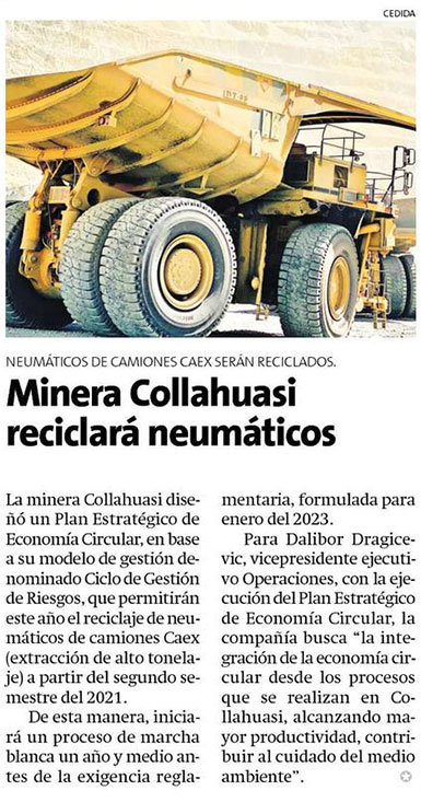 Collahuasi comenzará a reciclar sus neumáticos el segundo semestre del 2021 - (El Longino de Iquique)