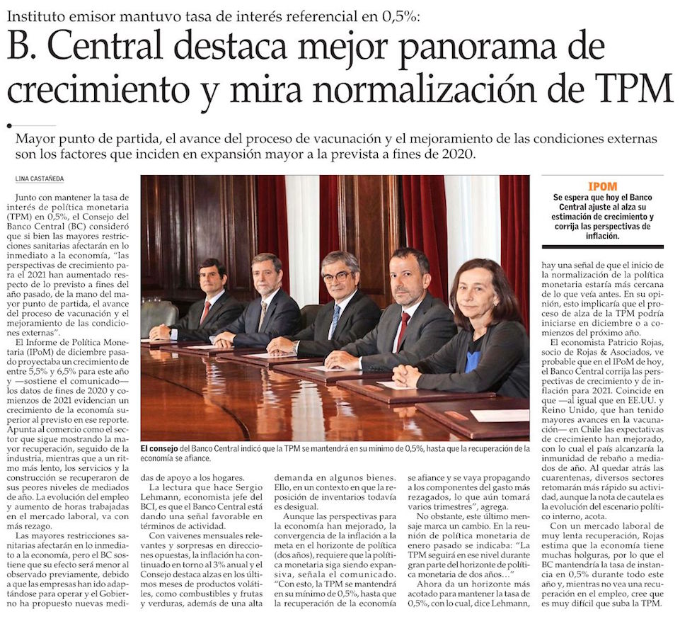 El optimismo del Central: Ve mejores perspectivas para 2021 y modera "levemente" sesgo expansivo de la política monetaria - (Pulso)