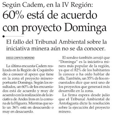 Habitantes y trabajadores de La Higuera valoran apoyo a Dominga - (El Día)