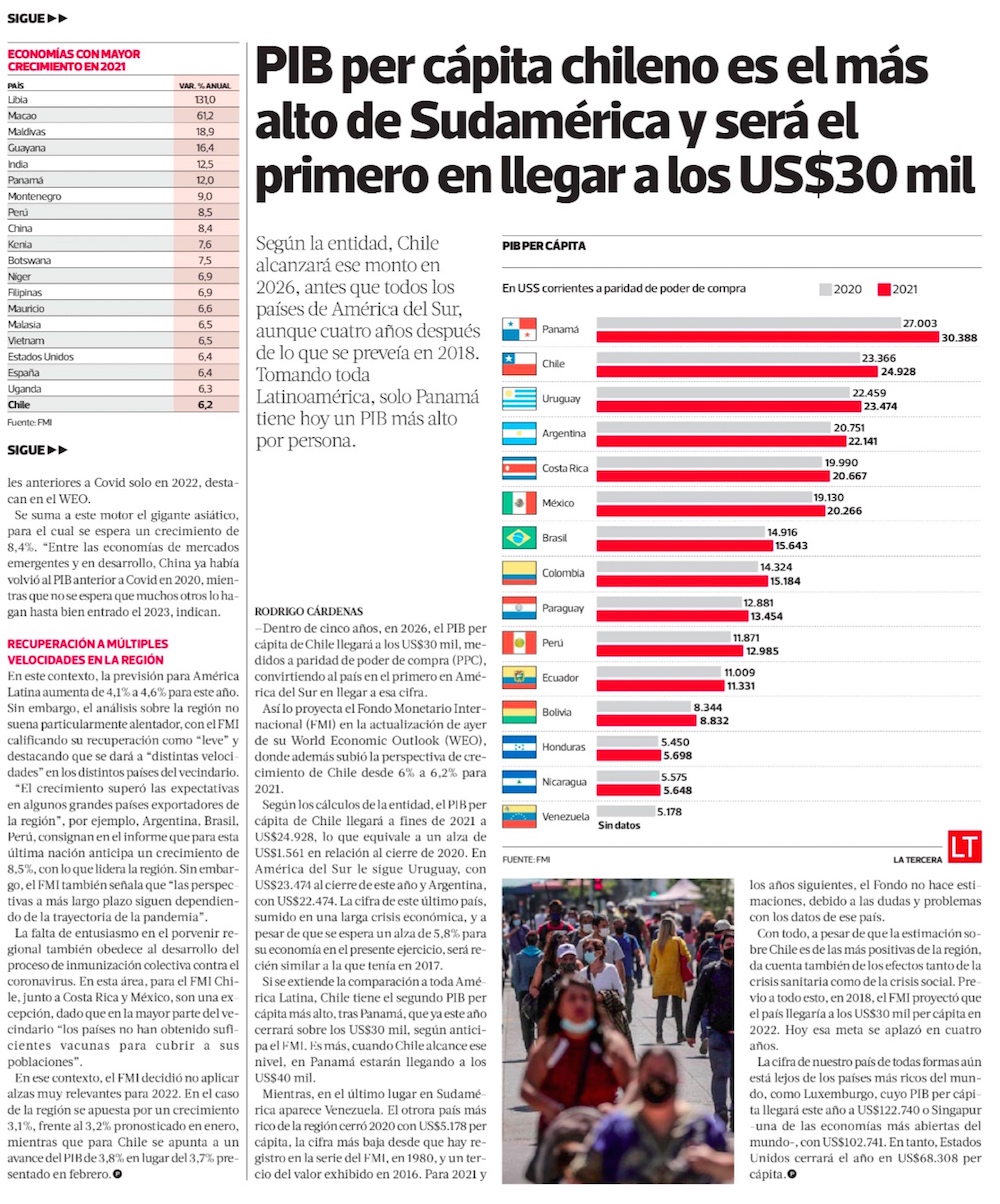 FMI vuelve a mejorar proyección para Chile y prevé que el PIB crecerá 6,2% este año - (Diario Financiero)