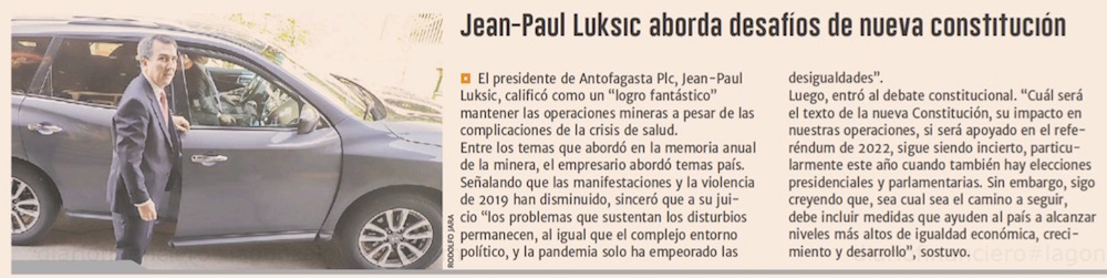 J.P Luksic pide incluir medias para mayor igualdad - (El Mercurio de Santiago)