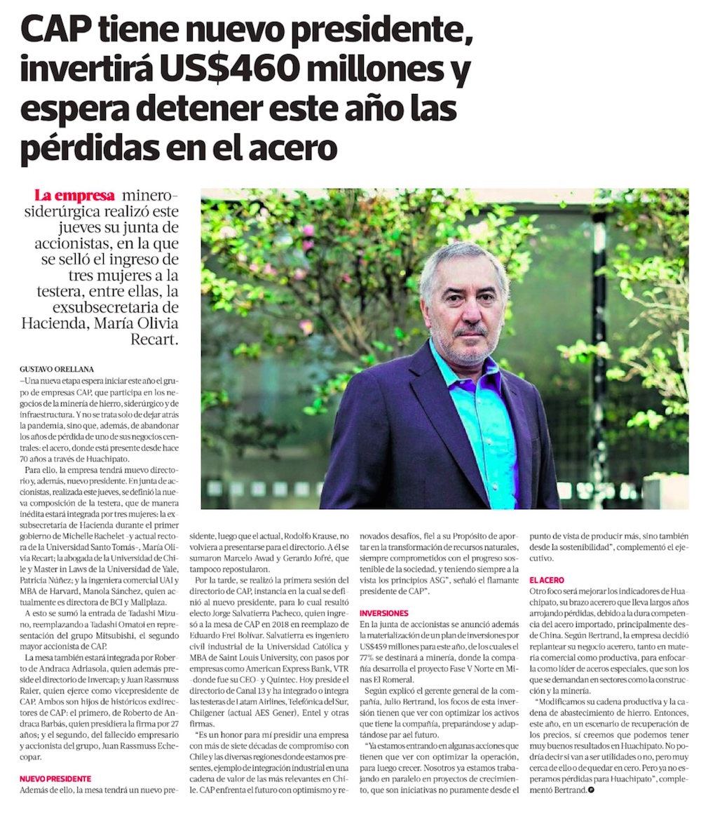 CAP designa nuevo presidente e incorpora tres mujeres a su directorio - (Diario Financiero)