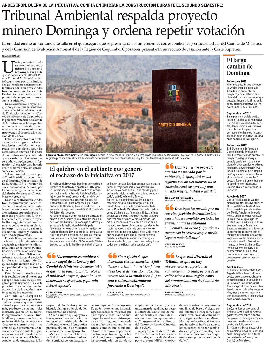 Tribunal Ambiental acoge reclamación por unanimidad a favor de proyecto Dominga - (El Día)