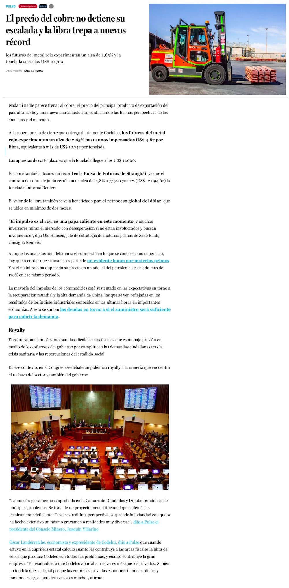 Cobre sigue en récord: destacan aporte a arcas mineras y fiscales, pero preocupa "precio desmedido" - (biobiochile online)