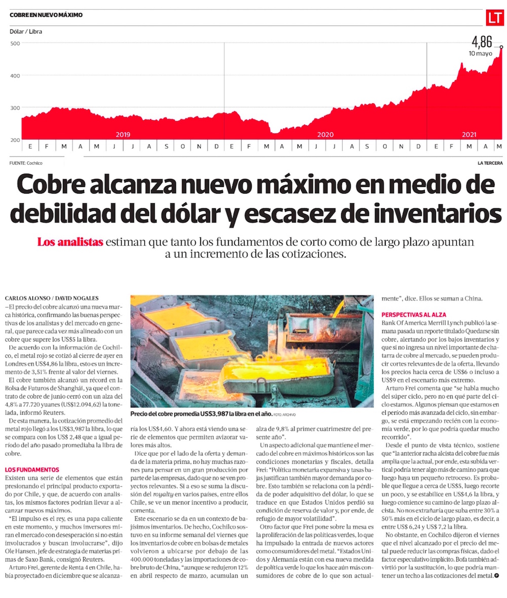 El precio del cobre no detiene su escalada y la libra trepa a nuevos récord - (Pulso Online)